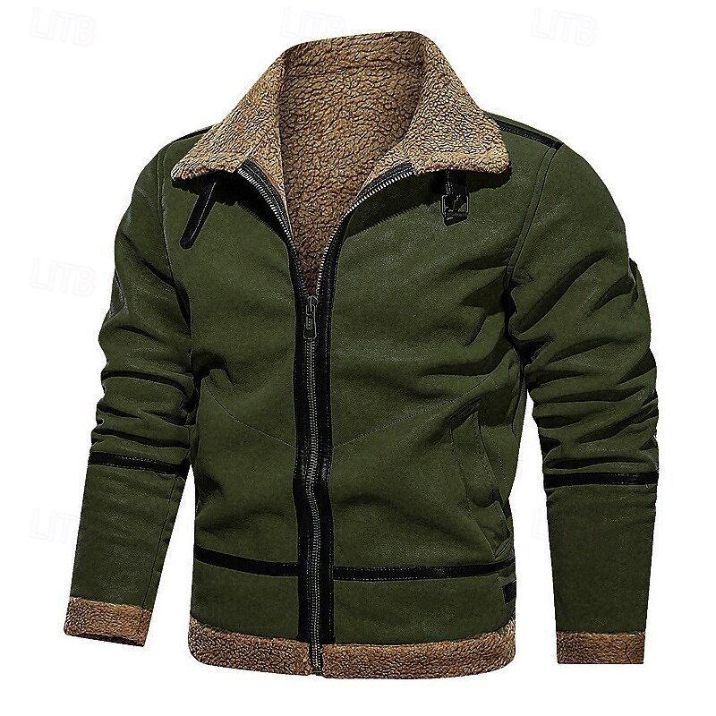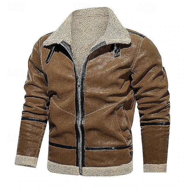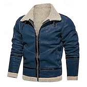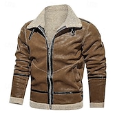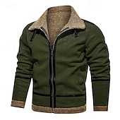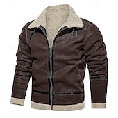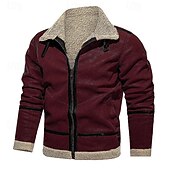 More information about Men's Winter Jacket Fleece Jacket Sherpa Jacket Vacation Daily Thermal Warm Pocket Fleece Fall Winter Plain Fashion Streetwear Lapel Regular Wine Blue Green Khaki Coffee Jacket
