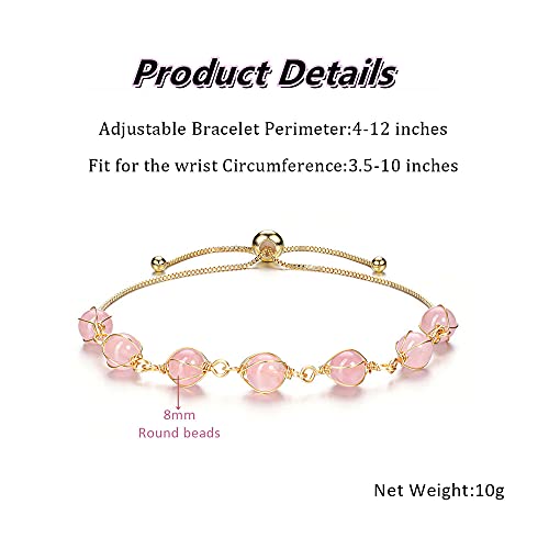 MANIFO Natural Rose Quartz Crystals Bracelet 14K Gold Reiki Healing Crystal Gemstone Adjustable Link Bracelets for Yoga Meditation 5