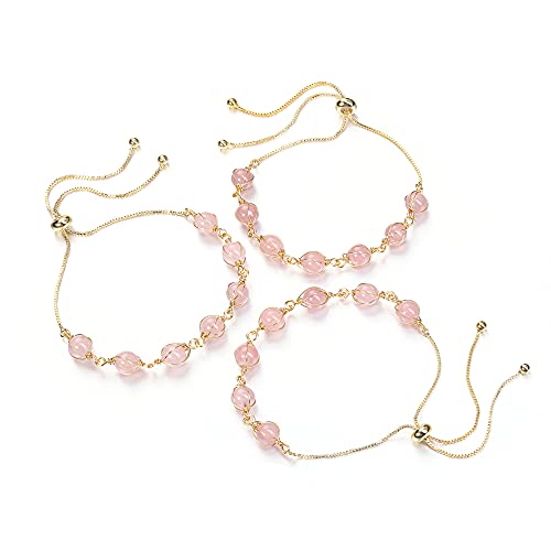 MANIFO Natural Rose Quartz Crystals Bracelet 14K Gold Reiki Healing Crystal Gemstone Adjustable Link Bracelets for Yoga Meditation 3