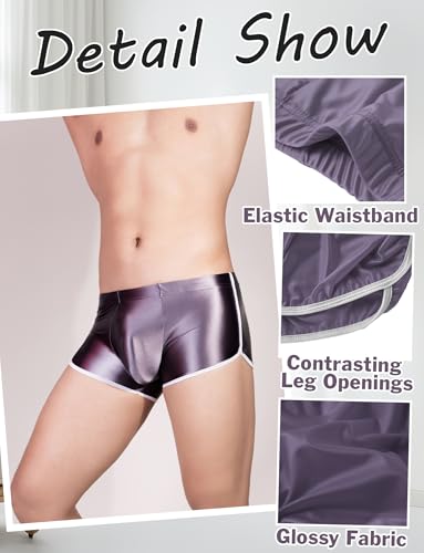 SEAUR Men's Sexy Underwear Bulge Pouch Glossy Underpants Low Rise Trunks Short Leg Boxer Briefs Shiny Sports Pajamas Shorts