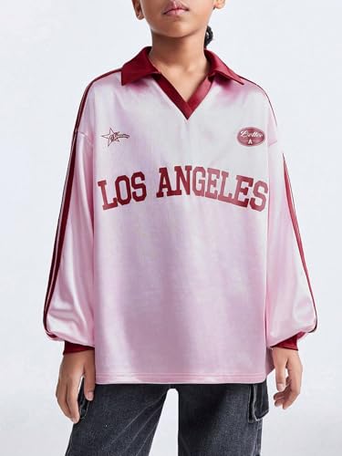 • Feature: Letter print, oversized, v neck, collar, long sleeve, drop shoulder, casual sports t-shirts for tween girls 8-12 years