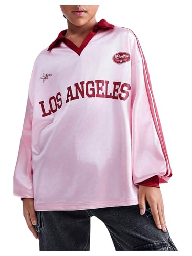 HOT ! SweatyRocks Girl's Oversized Letter Graphic Print T Shirt Long Sleeve Collared Tees Top