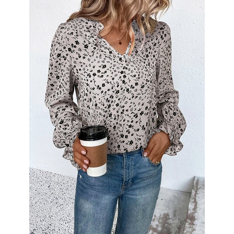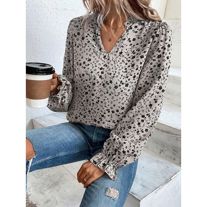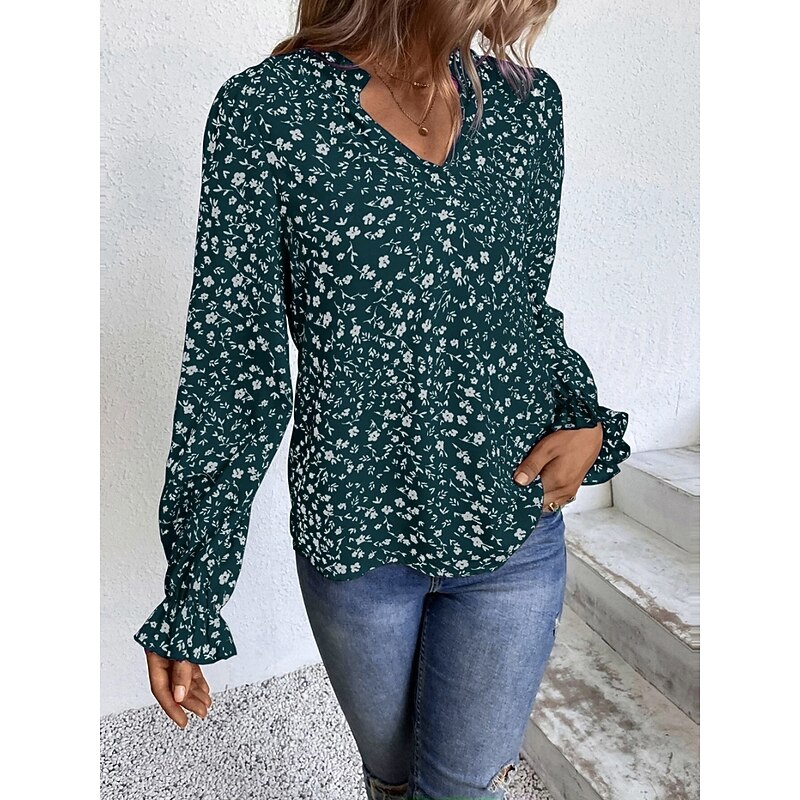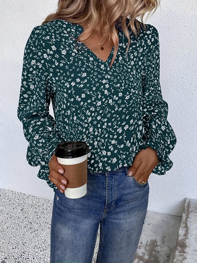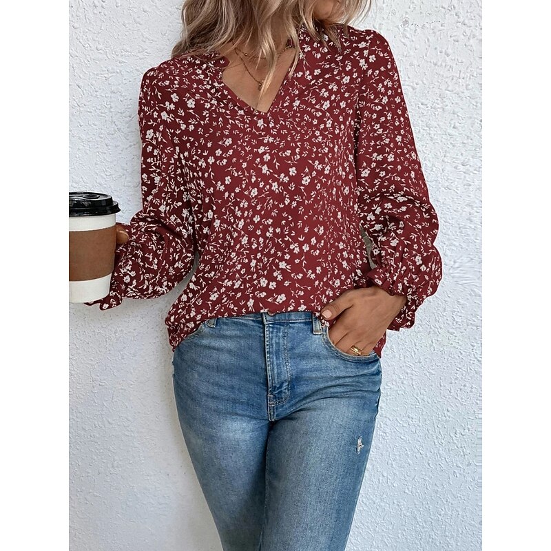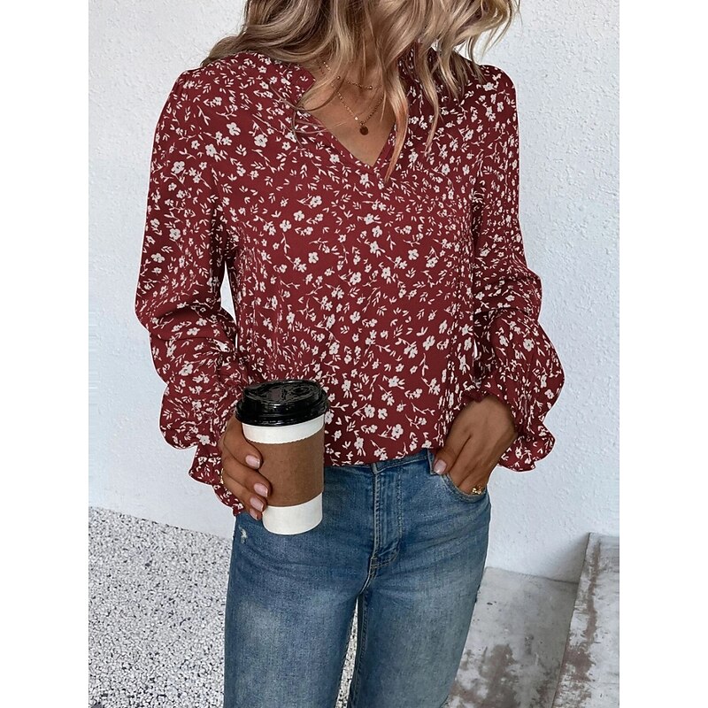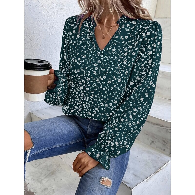 HOT ! Women's Shirt Blouse Floral Stylish Casual Long Sleeve V Neck Regular Tops Daily Print Wine Green Beige Summer Spring
