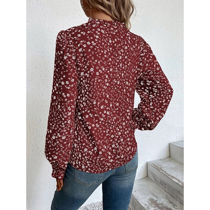 Women's Shirt Blouse Floral Stylish Casual Long Sleeve V Neck Regular Tops Daily Print Wine Green Beige Summer Spring 11