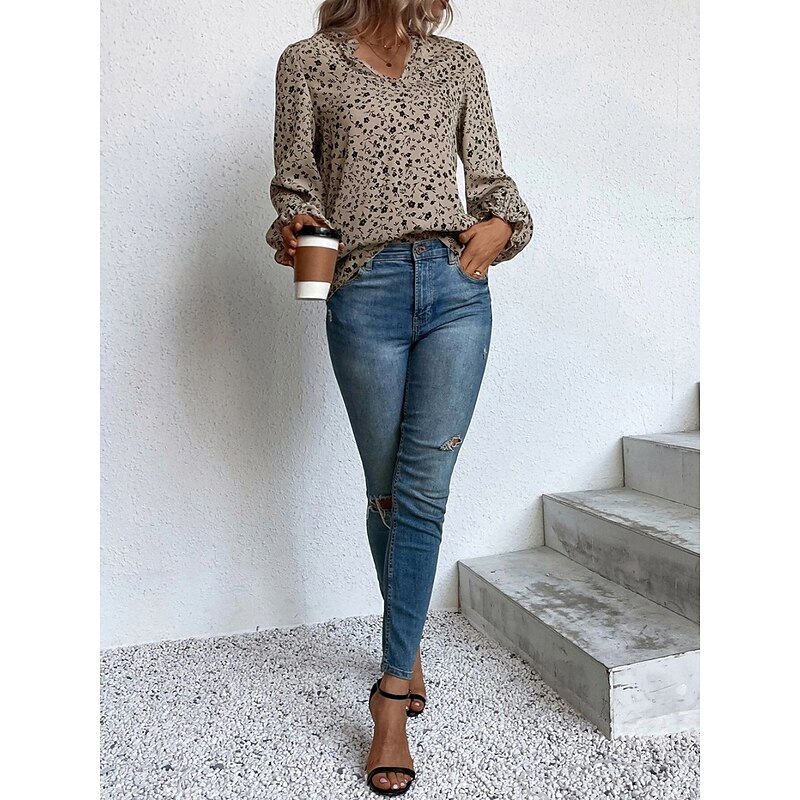 More information about Women's Shirt Blouse Floral Stylish Casual Long Sleeve V Neck Regular Tops Daily Print Wine Green Beige Summer Spring
