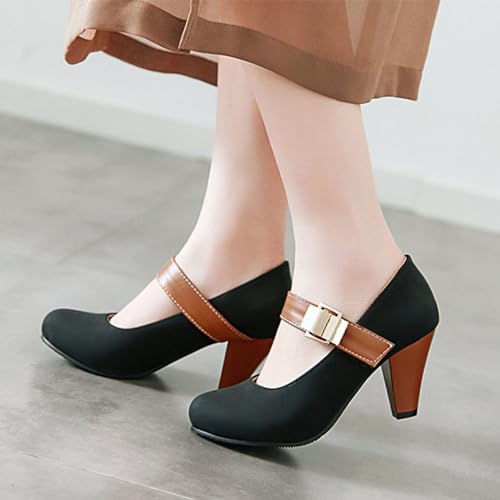 YTINGNICE Woman Pumps Round Head and Shallow Mouth Magic Sticker Single Shoe Heels Ladies high Heels Women Shoes Women's Pumps (Black,Women-US-7) 6