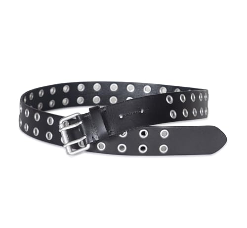 • ALLSAINTS LEATHER BELT FOR WOMEN: The AllSaints 38mm Strap Leather Belt with Eyelets is crafted from 100% leather and decorated by a tough double layer of eyelet studs. Completely adjustable with a large metal buckle. Find our AllSaints signature debossed onto the leather.