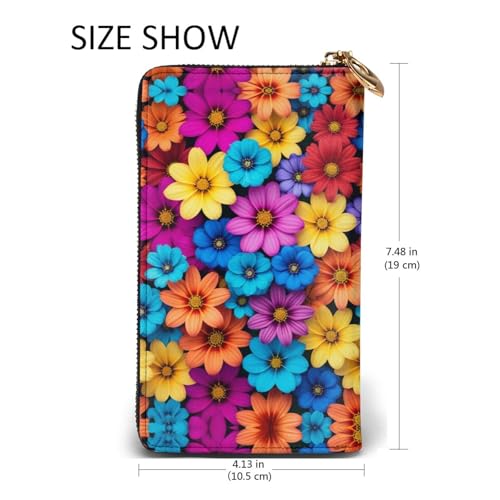 Women's Long Cash Wallet, PU Leather Elegant Clutch Change Purses with Zipper, Travel, Gifts (colorful flowers Print)