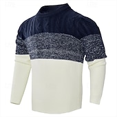 More information about Men's Pullover Sweater Jumper Knit Sweater Ribbed Knit Regular Tops Knitted Color Block Crew Neck Fashion Basic Vacation Daily Wear Clothing Apparel Fall Winter Black Navy Blue S M L
