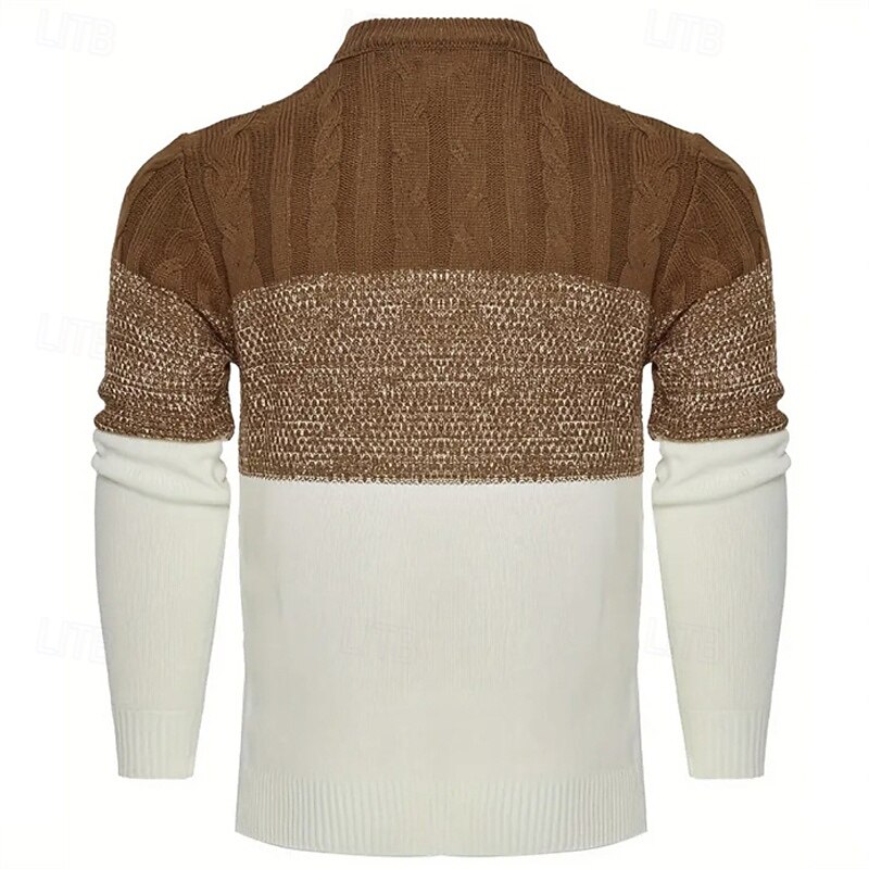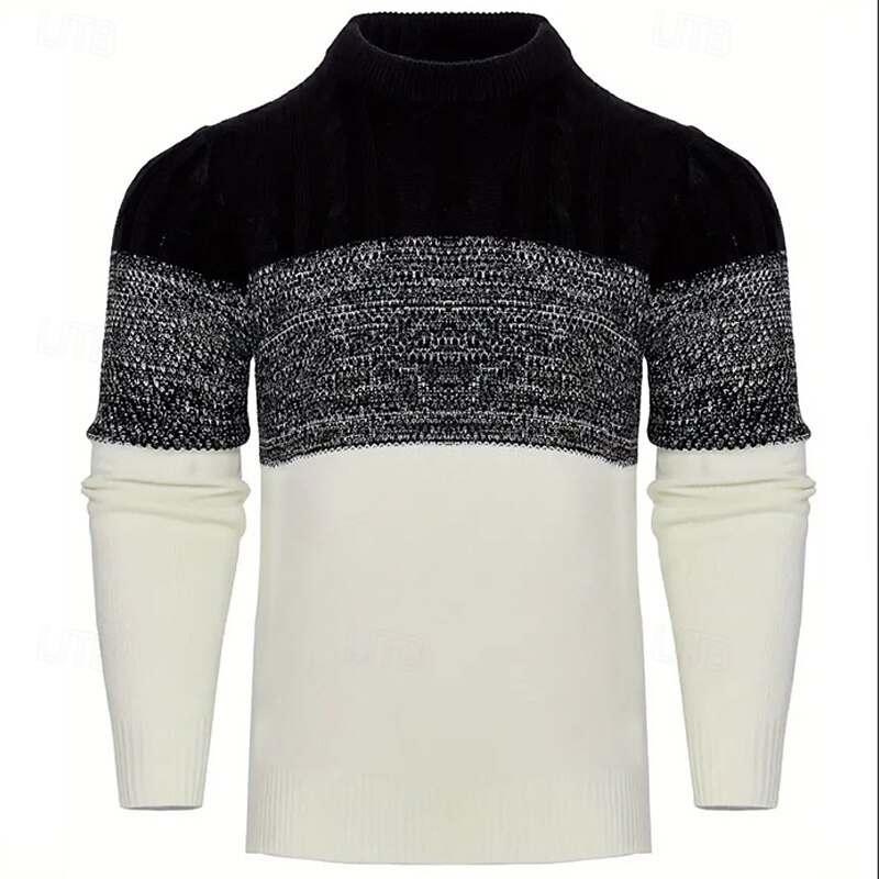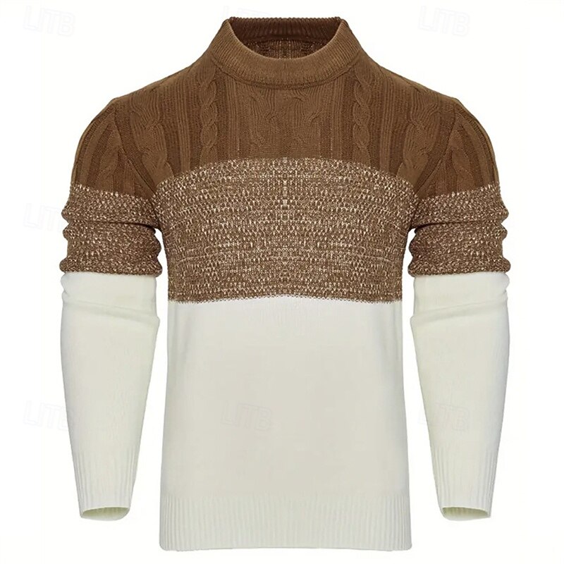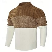 Highlights - Stay stylish and cozy this fall and winter with this men's long sleeve color block sweater - Perfect for a casual date or vacation, this basic sweater features a crew neck and ribbed knit style.