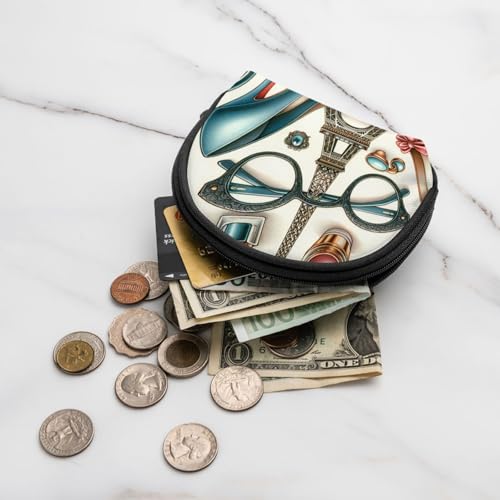 Why Choose Portable Coin Purse Eiffel-Tower-High-Heel-Glasses Mini Zippered Money Pouch Card Holder?