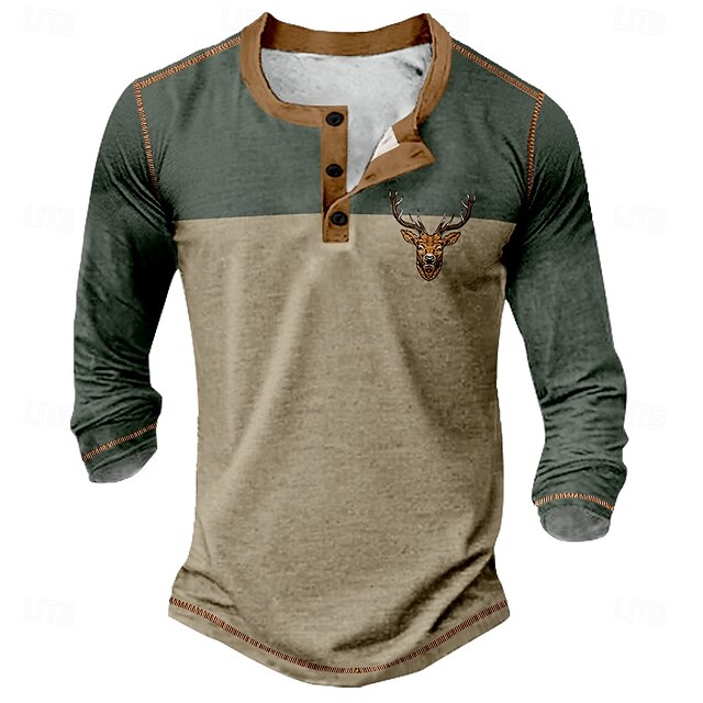 Why Choose Men's Graphic animal print Henley Shirt Tee Long Sleeve Vintage Fashion Designer Outdoor Casual Daily Spring & Fall every Seasons Army Green Dark Brown Navy Blue Henley Henley T-Shirt?