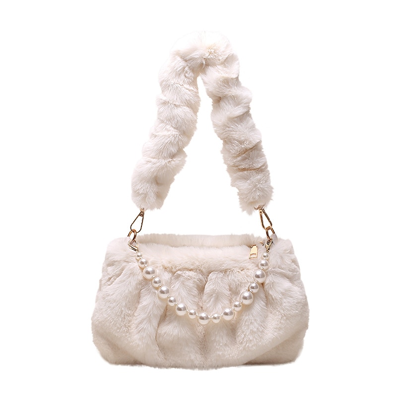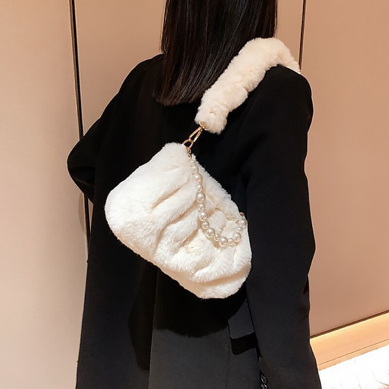 HOT ! Women's Handbag Shoulder Bag Plush Bag Fluffy Bag Faux Fur Party Valentine's Day Daily Pearls Chain Large Capacity Lightweight Durable Solid Color Black White Pink