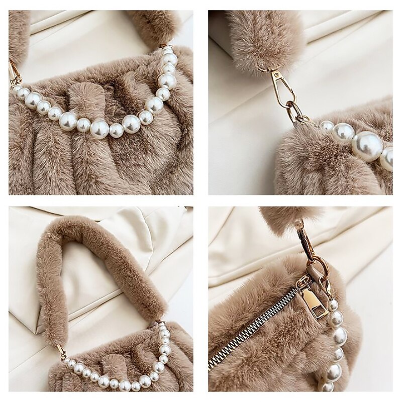 More information about Women's Handbag Shoulder Bag Plush Bag Fluffy Bag Faux Fur Party Valentine's Day Daily Pearls Chain Large Capacity Lightweight Durable Solid Color Black White Pink
