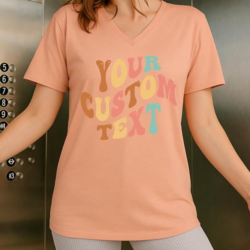 Custom T-Shirts For Men And Women Custom T Shirts Design Your Own With Custom Text, Funny Shirts, Bride Shirt, Personalized Shirts Made only For You, Groovy Women Shirts (D) Women V-Neck T-Shirt)