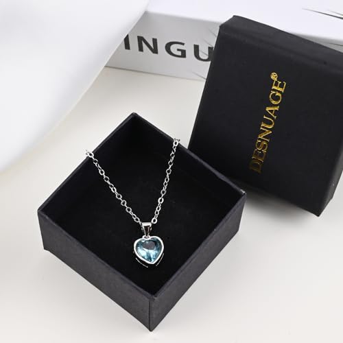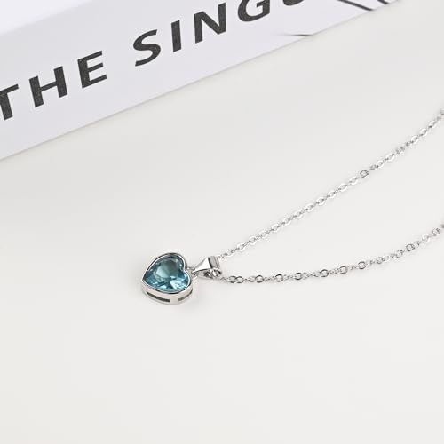 Heart Aquamarine Necklace 925 Sterling Silver Pendant Crystal Necklace Aquamarine Jewelry Gem Necklace Birthstone Necklaces for Women 7