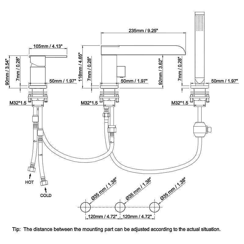 This Bathtub Faucet Waterfall Long Spout Bath Tub Filler Mixer Taps Golden with Heldhand Shower 60 inch Hose, 3 Hole 2 Handle Deck Mounted Widespread Bathroom combines elegant design with practical functionality. Every detail has been carefully considered to ensure you get the best possible experience. The exceptional construction means this product will serve you well for years to come.