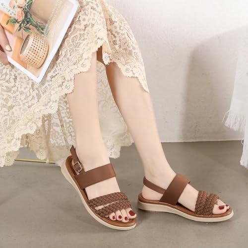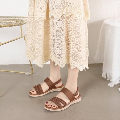 Women's Flat Sandals Ankle Strap Open Toe Summer Braided Sandal Beach Comfortable Platform Outdoor Slingback Dress Shoes 6