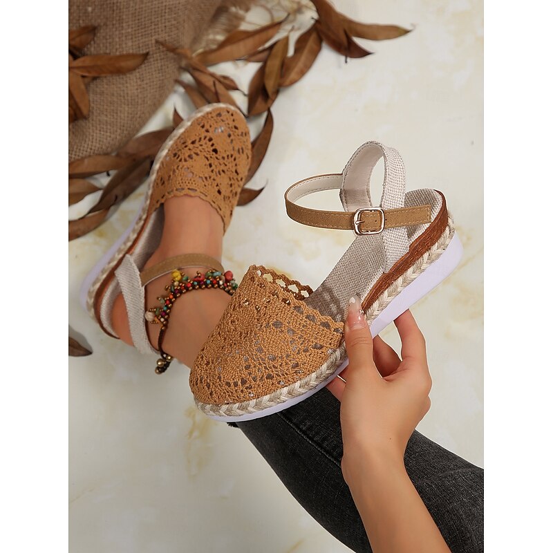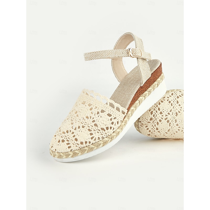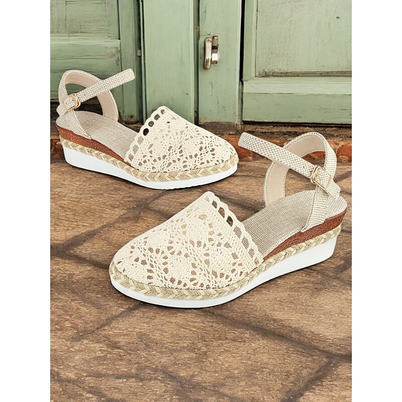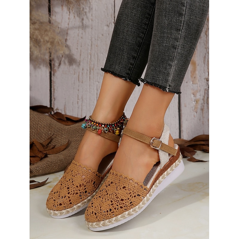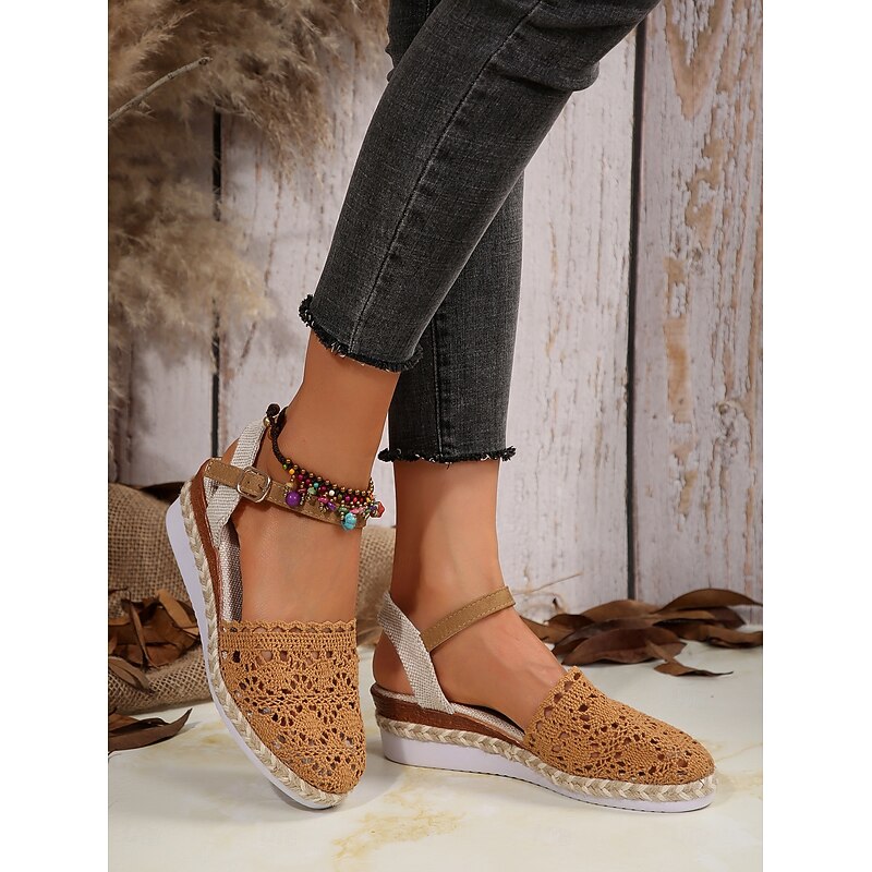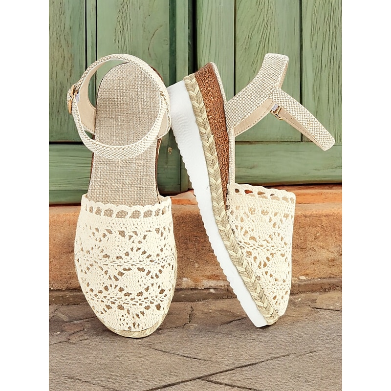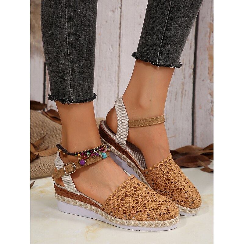 HOT ! Women's Crochet Espadrille Wedge Sandals with Ankle Strap, Boho Style Lightweight Summer Shoes for Casual and Beach Wear