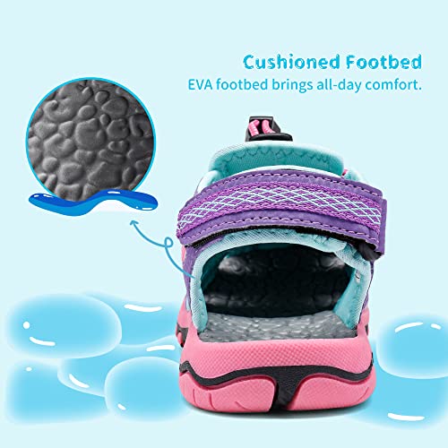 • Cushioned & Protective: Enjoy all-day comfort with the cushioned EVA footbed, while the rubber toe cap provides extra protection. Let your kids dive into summer adventures with confidence and protection.