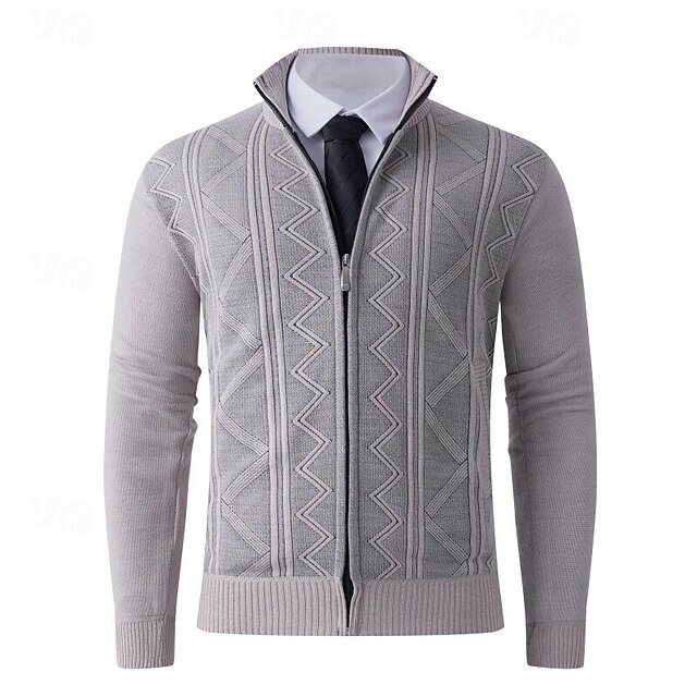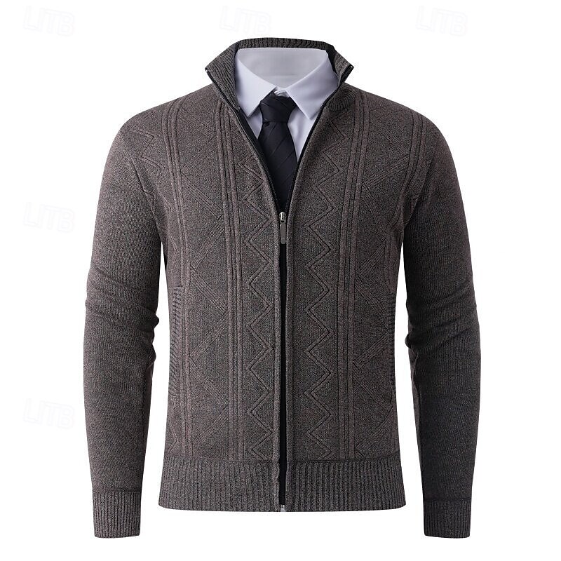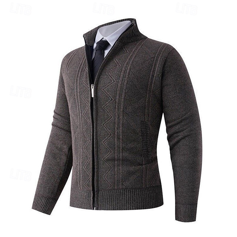 Men's Cardigan Sweater Cropped  Sweater Zip Sweater Knit Sweater Ribbed Knit Regular Tops Fleece Plain Stand Collar Fashion Classic Vacation Daily Wear Clothing Apparel Fall Winter Wine Red Navy Blue 12