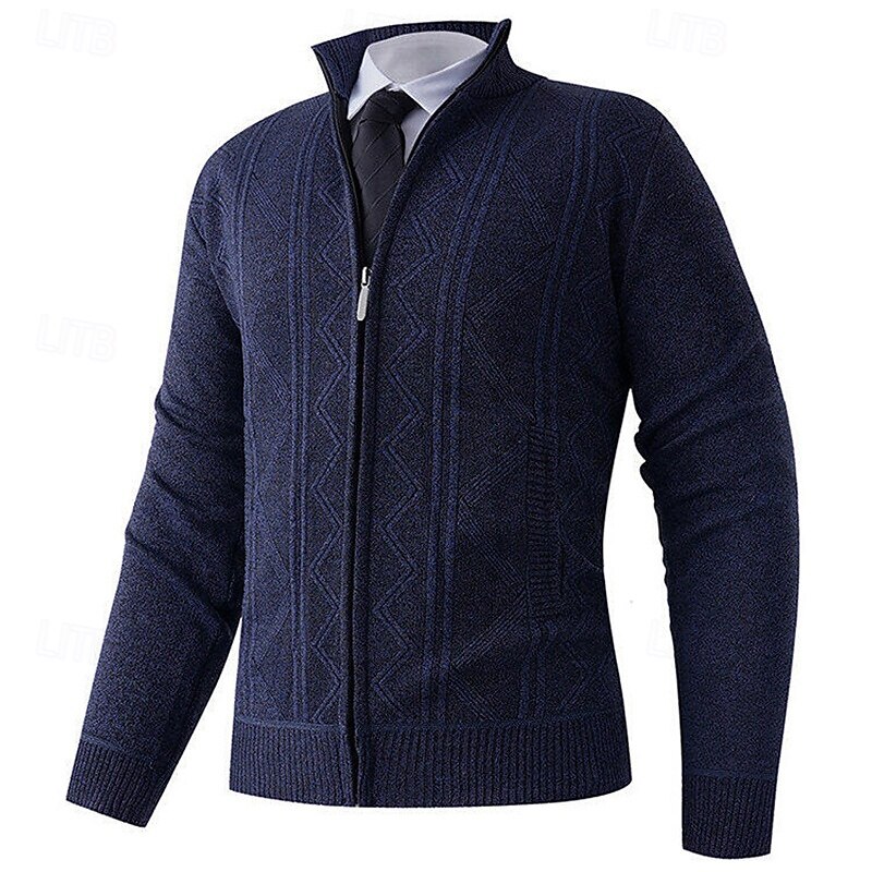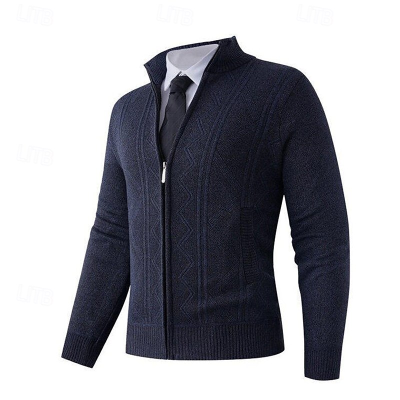 HOT ! Men's Cardigan Sweater Cropped Sweater Zip Sweater Knit Sweater Ribbed Knit Regular Tops Fleece Plain Stand Collar Fashion Classic Vacation Daily Wear Clothing Apparel Fall Winter Wine Red Navy Blue