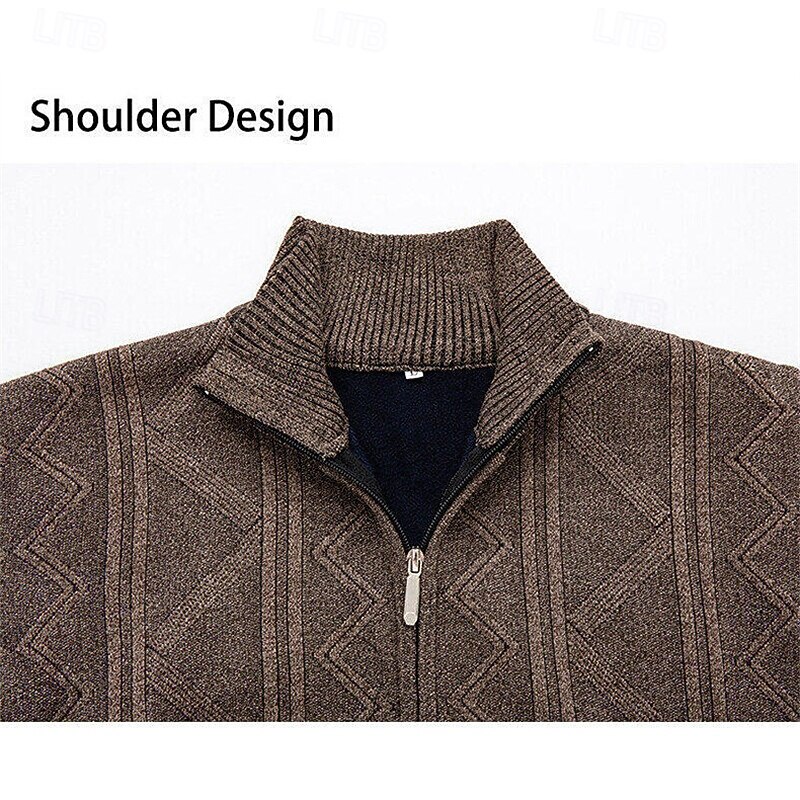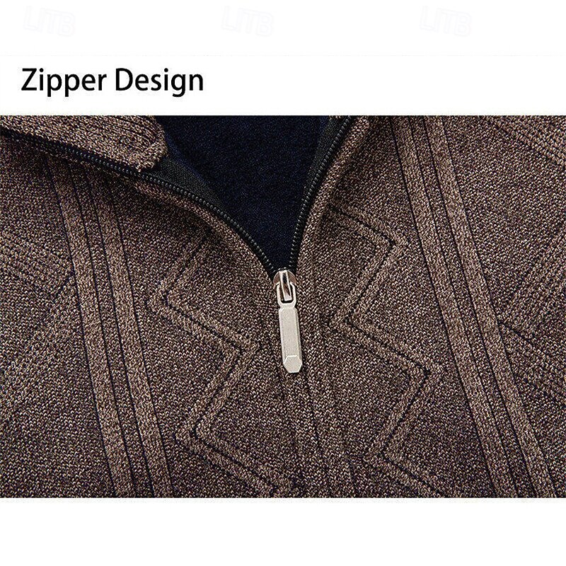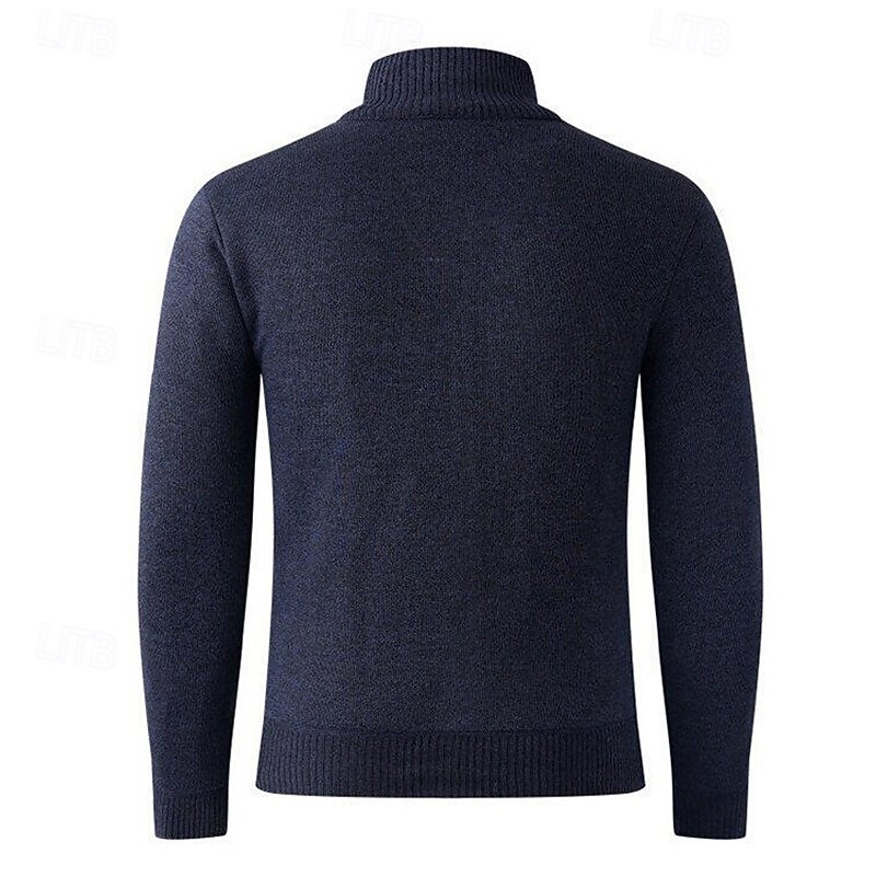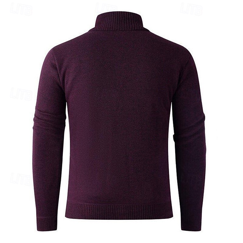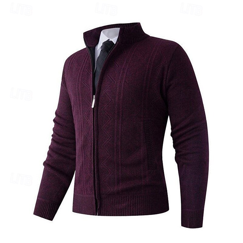 More information about Men's Cardigan Sweater Cropped Sweater Zip Sweater Knit Sweater Ribbed Knit Regular Tops Fleece Plain Stand Collar Fashion Classic Vacation Daily Wear Clothing Apparel Fall Winter Wine Red Navy Blue