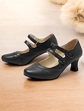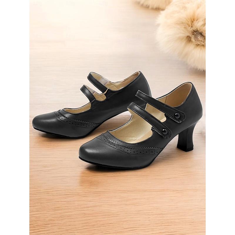 Highlights [Fabric]: Exquisitely crafted from high-quality PU leather, these vintage-inspired Mary Jane heels combine durability with a sleek finish. The synthetic leather lining ensures a comfortable wearing experience, making them ideal for all-day use. [Silhouette]: With a timeless vintage silhouette, these shoes feature a prominent round toe and a supportive mid heel, perfectly balancing elegance with practicality. The adjustable strap ensures a secure fit, adding to their comfort. [Design Highlights]: The Mary Jane heels are adorned with intricate brogue detailing and chic button embellishments, adding a touch of sophistication. The stiletto heel elevates the classic design, making it a versatile choice for various ensembles. [Occasions]: Ideal for a range of occasions from daily wear to work events, these heels seamlessly blend into both formal and casual outfits. The vintage appeal makes them a standout choice for those seeking a retro-inspired aesthetic, perfect for pairing with dresses or smart trousers. [Size Notice]: Available in a wide range of sizes from US5 to US13, these shoes accommodate various foot sizes. They are designed to fit standard sizing, so selecting your usual size is recommended for the best fit.