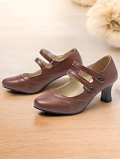 More information about Women's Vintage Gatsby Brown Mary Jane Heels with Brogue Detailing, Comfortable Mid Heel Shoes for Retro-Inspired Outfits