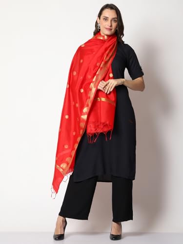 • TRADITIONAL BANARASI WEAVING FOR A REGAL LOOK: This dupatta features authentic Banarasi-inspired motifs, intricately woven with zari to reflect the grandeur of Indian heritage. The detailed craftsmanship creates a rich, textured finish that pairs beautifully with ethnic and fusion outfits, making it a standout piece for any special occasion.