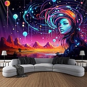 HOT ! Blacklight Tapestry UV Reactive Glow in the Dark Goddness Trippy Mountain Misty Nature Landscape Hanging Tapestry Wall Art Mural for Living Room Bedroom