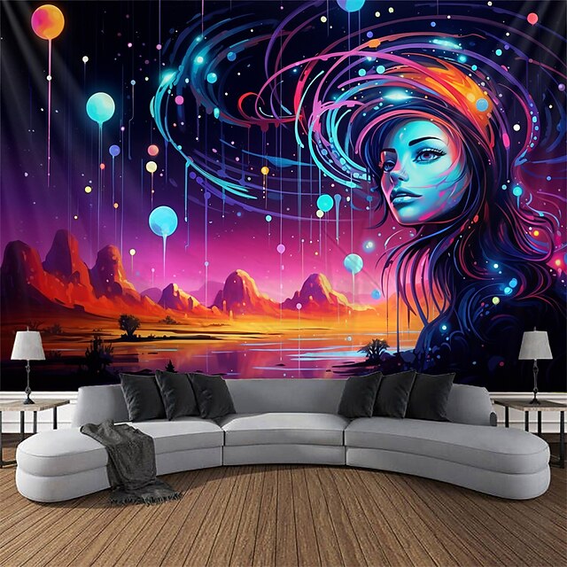 Highlights 【Durable Construction】 Crafted with high-quality polyester fabric, this tapestry is built to last. Its robust composition ensures that you can enjoy its beauty for years to come. 【Soft and Lightweight】 This tapestry is soft to the touch and lightweight, making it perfect for both indoor and outdoor use. 【Multiple Size Options】 Available in different sizes to accommodate any room's dimensions. 【Intricate Design】 The tapestry features a captivating design inspired by life itself. Its vivid imagery, crisp lines, and vibrant colors will become a conversation piece in any room. 【Versatility at Its Best】 Not just for wall decor, this tapestry can also double as a tablecloth or a picnic blanket, adding functional versatility to its artistic charm. 【Note】 1. Please allow 1-2cm (0.4"-0.8") deviations due to manual measurement. 2. Please understand the tiny color vary from the product due to different light and screen display. 3. UV/Black Light Reactive: This glow in the dark tapestry glows under blacklight / UV light. In normal light, the colors also are full and vivid.