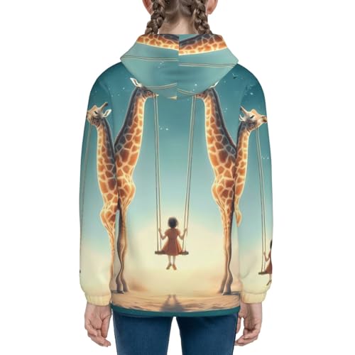 Giraffe Swing Kids Pullover Hoodies Boys Zip Up Sweatshirts Girls Athletic Clothes with Pocket 5