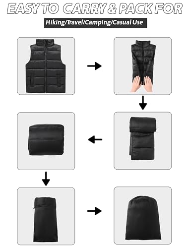 • Lightweight & Packable Design: Engineered for convenience, this vest compresses easily to fit into its own pocket or a small bag, making it a great companion for hiking, travel, and variable weather conditions.