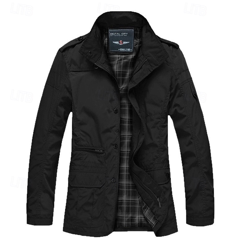 More information about Men's Peacoat Trench Coat Vacation Daily Fall Winter Polyester Wear Proof Outerwear Clothing Apparel Fashion Classic Plain Pocket Lapel Zipper