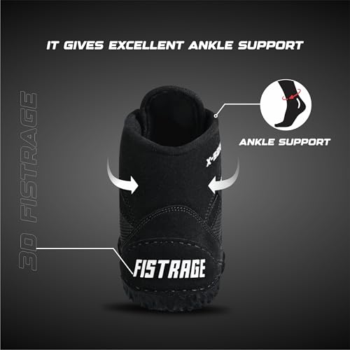 • The Fistrage X-Series Enhanced Comfort and Spport: EVA padding, heel cushioning, and ankle support provide unmatched comfort for beginners to pro-level wrestlers