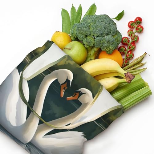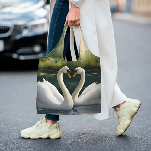 Beautiful White Swans on The Lake Print Stylish and Spacious Single Shoulder Commuting Canvas Tote Bag for Work Travel 6