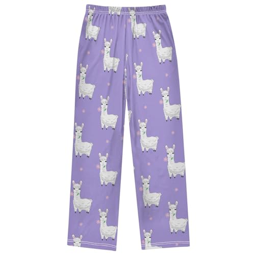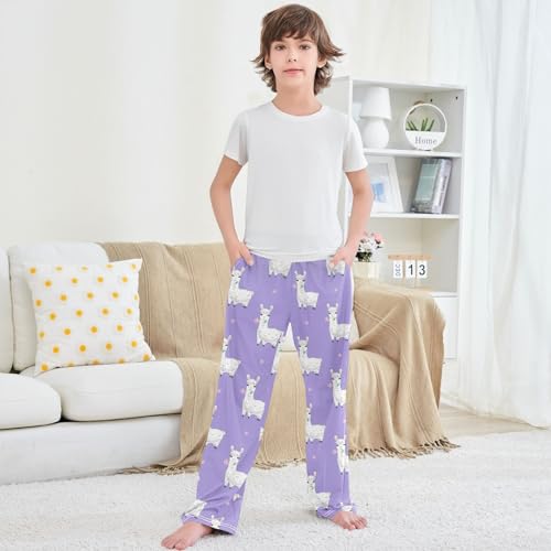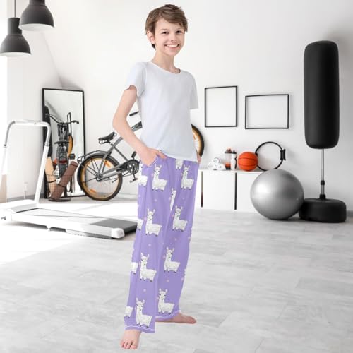 sought-after ! Boy's Pj Pants Llama Alpaca Flower Light Purple Lounge Bottoms Elastic Waist Kids Joggers with Pockets Size 6-14