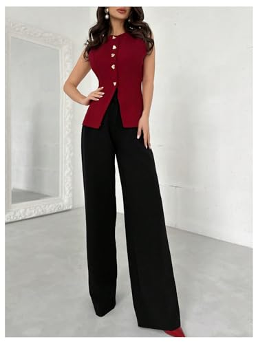 Floerns Women's Elegant Sexy Heart Metal Button Down Suit Vest Business Casual Lightweight Jacket Blouse Tops 2