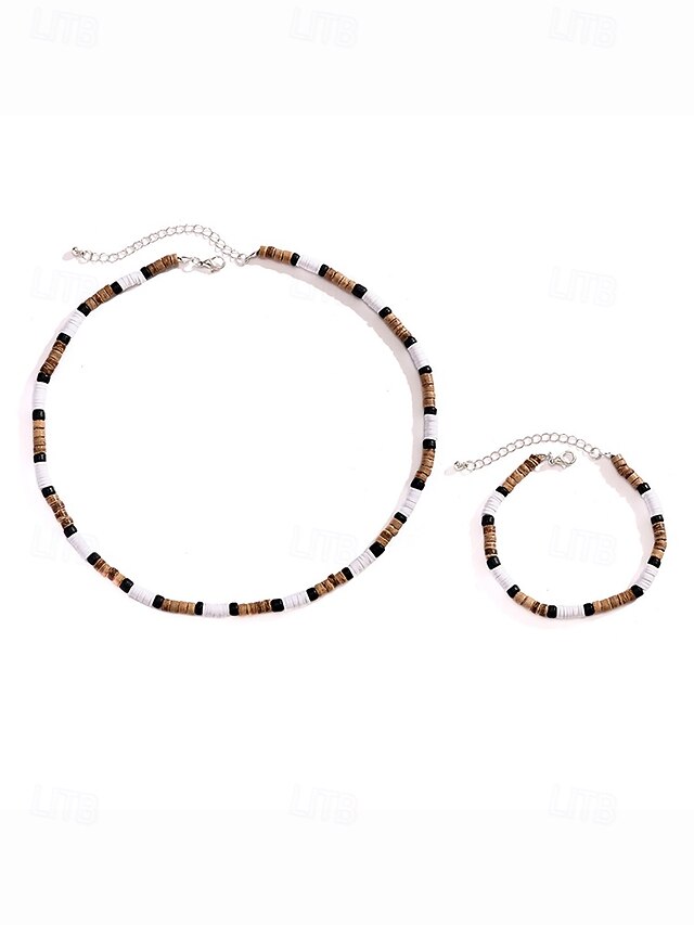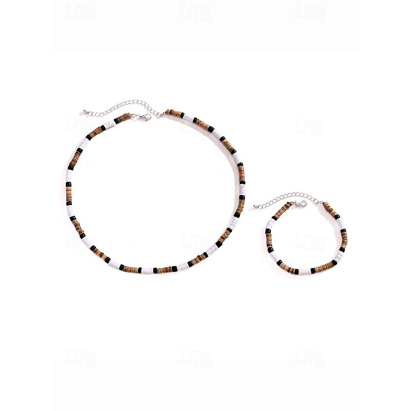 $9.99 - Men's Bohemian Style Beaded Necklace and Bracelet Set - White, Black, Brown Wooden Bead Jewelry for Beach, Casual Wear and Summer Parties 2025. Shop for cheap Men's Jewelry online? Buy at lightinthebox.com on sale today!