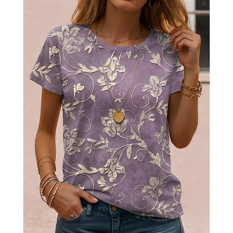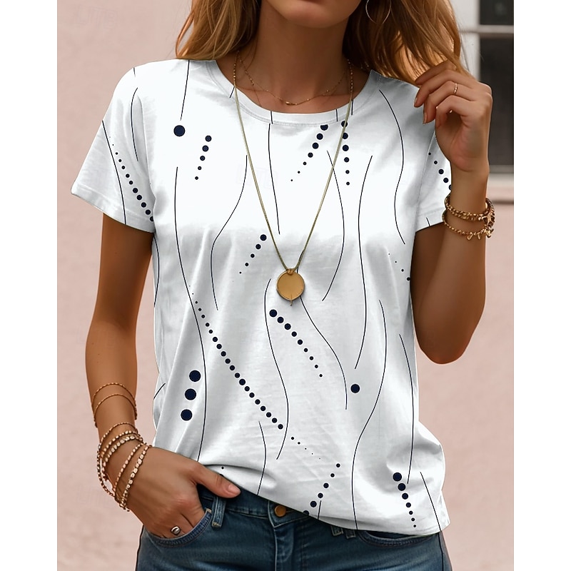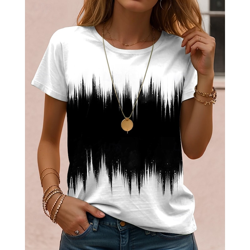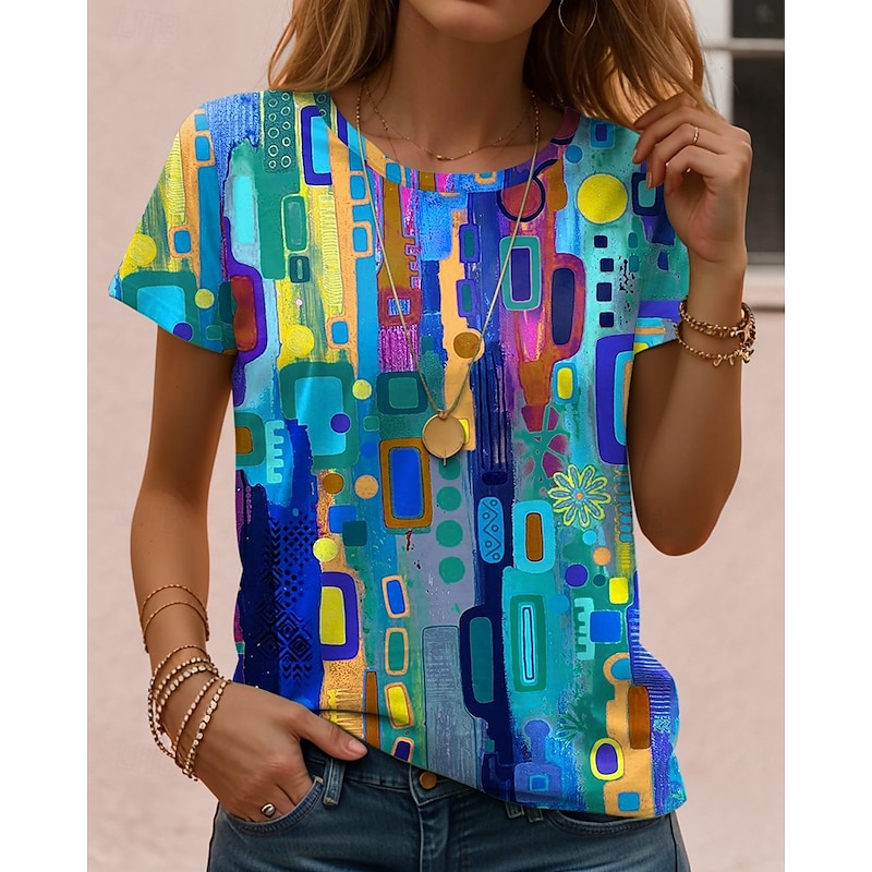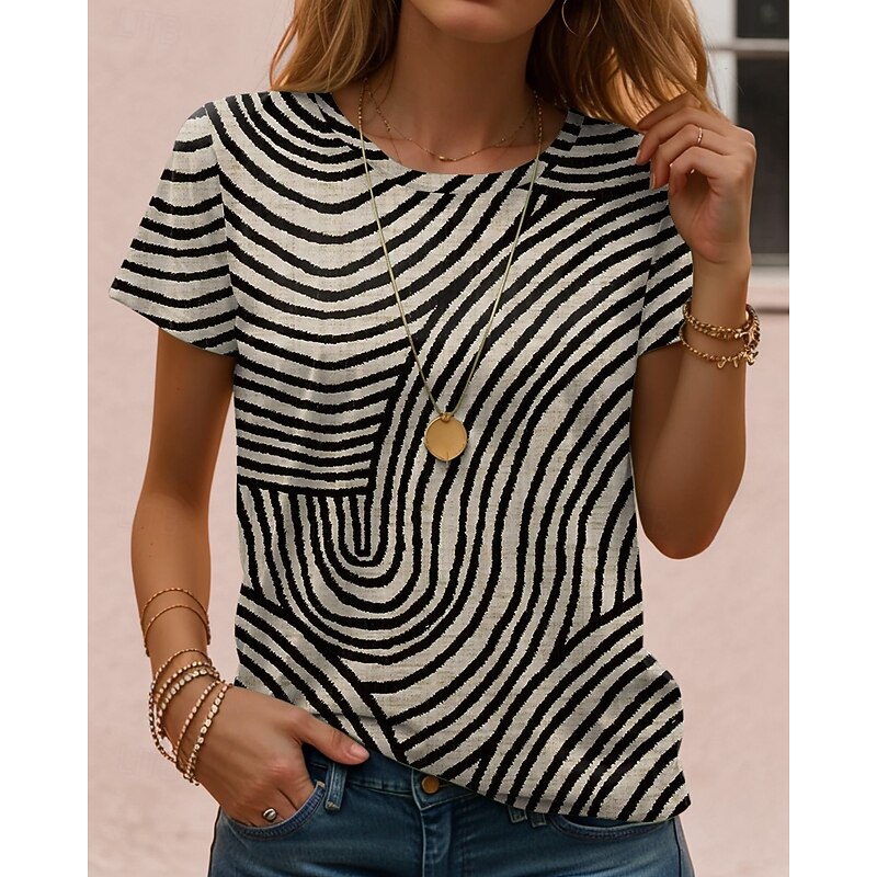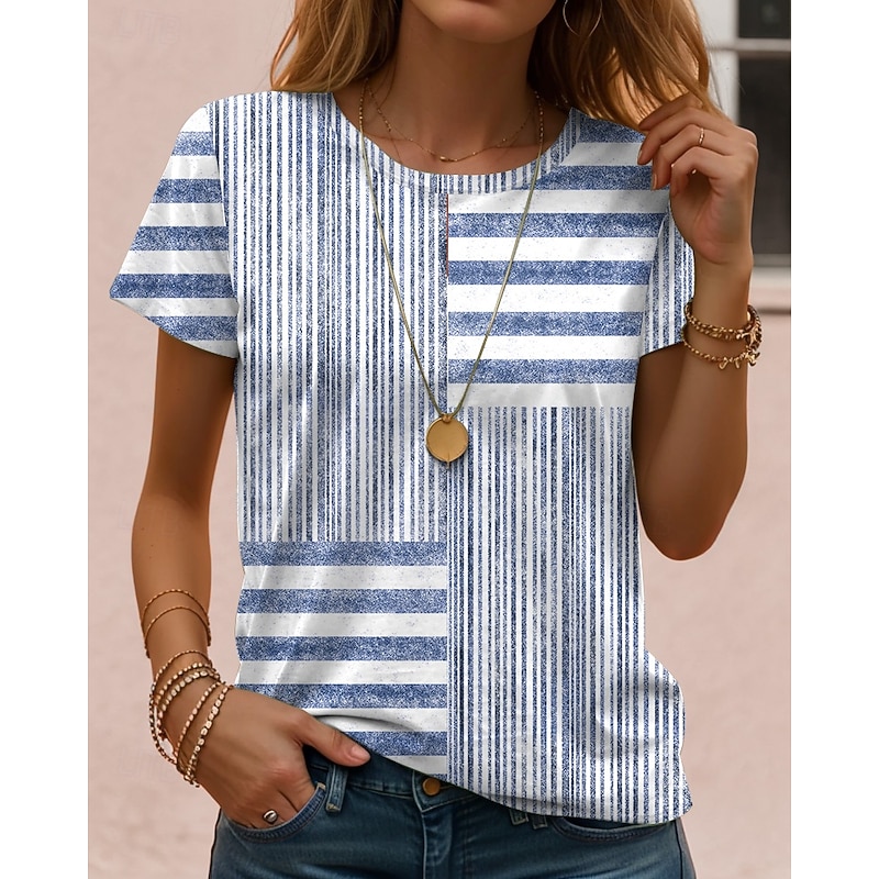 More information about Women's T Shirt Graphic Geometric Striped Vintage Stylish Classic Short Sleeve Crew Neck Regular Tops Daily Print Black White Royal Blue Blue Purple Summer Spring