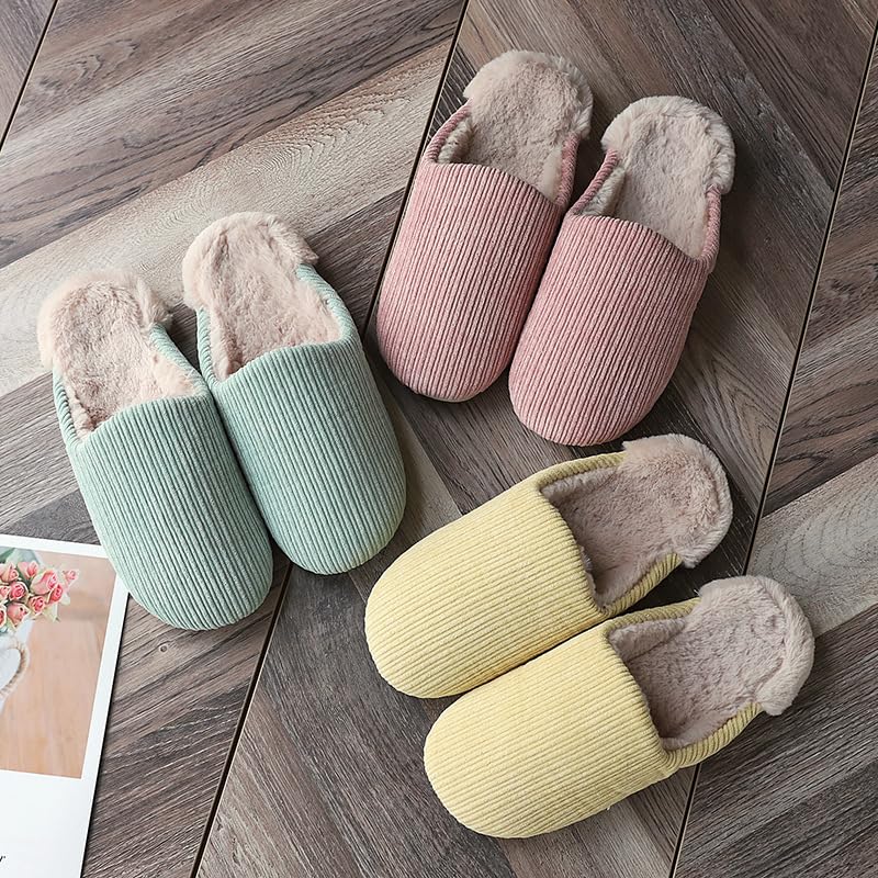 HOT ! Women’s slip on house slippers closed toe ribbed fabric upper plush lining cushioned insole lightweight non slip textured outsole backless mule for indoor wear quick trips