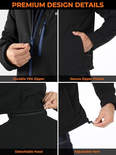 • Softshell fabric exterior with breathable linning ensures you don't lose any excess heat and enjoy snug warmth; Detachable hood is specially designed for chilly mornings and extra protection on windy days; Water and wind resistance for your unrestricted movement towards outdoor.