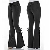 More information about Women's Jeans Flare Vacation Vintage Fashion Full Length Medium Waist Plain Pocket Buckle Comfortable Micro-elastic Outdoor Vacation Daily Black Dark Blue Light Blue Spring Fall Regular Fit