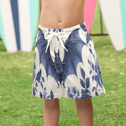 Pigsaly Boys' Swim Board Shorts Black Bat Rose Boy's Swim Trunks Kids Swimwear 4T 6