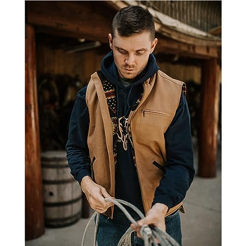 • MULTIPLE POCKETS - Canvas Sawbuck Vest for men is designed to provide reliable storage for all our valuable essentials; It has two handy zipped Hip Pockets and zippered Chest Pocket so you can stay active and keep stuff safe