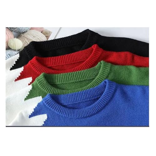 Men's Color Block Knit Sweater Pullover Loose Fit Casual Long Sleeve Jumper Streetwear