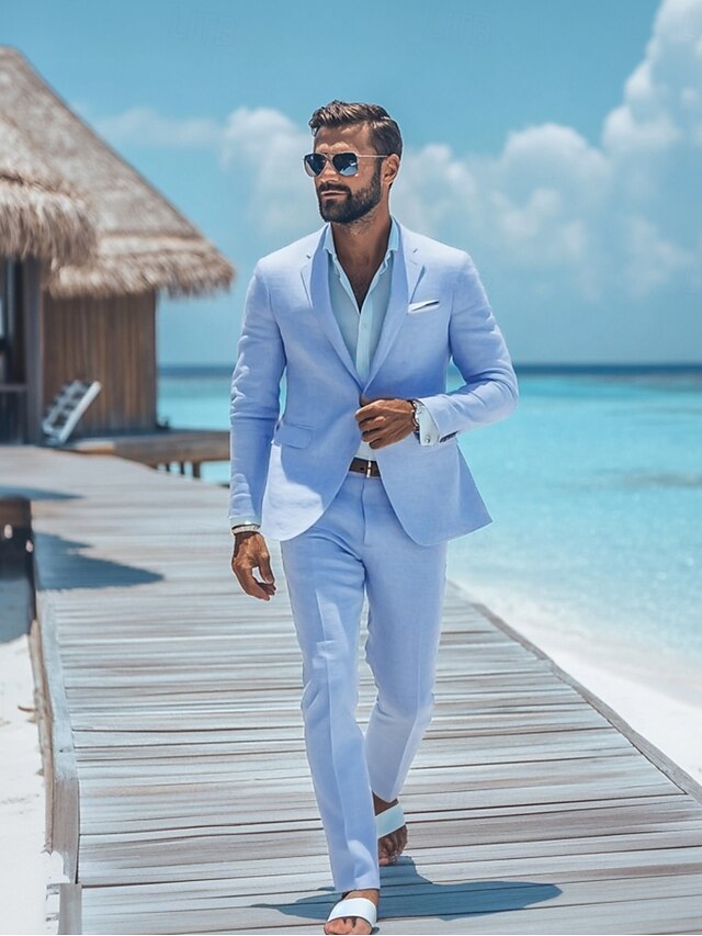 $112.99 - Men's Beach Wedding Linen Suits Notch Lapel Sky Blue Beige Solid Colored Tailored Fit 2 Piece Single Breasted One-button 2025. Shop for cheap Beach Suits online? Buy at lightinthebox.com on sale today!