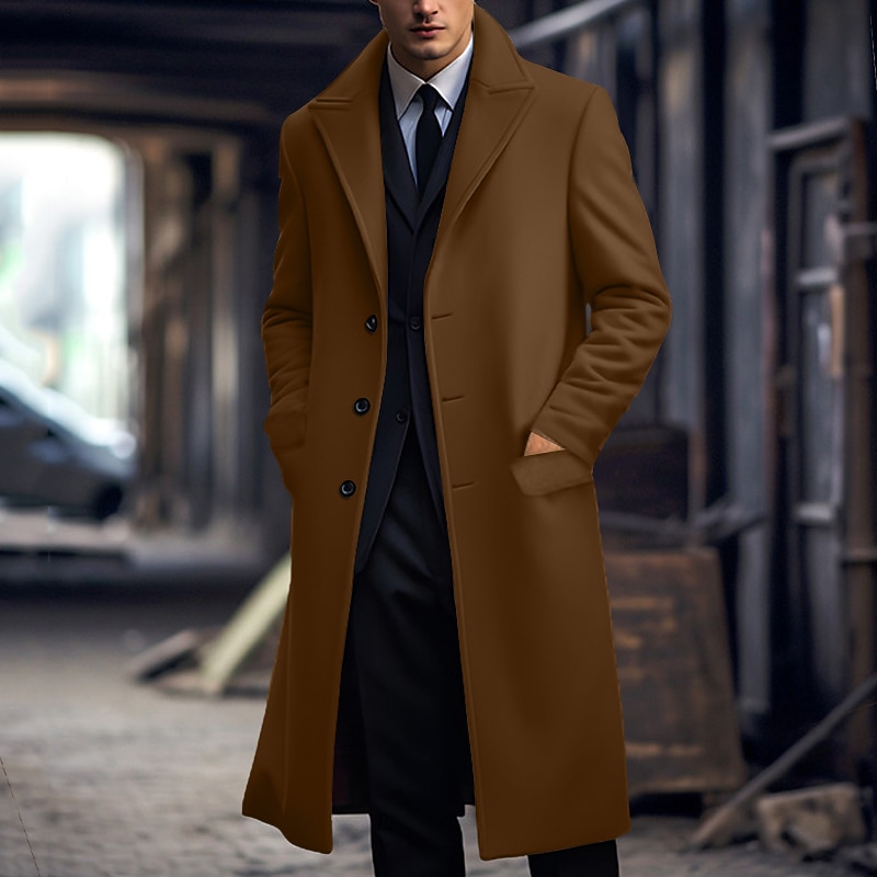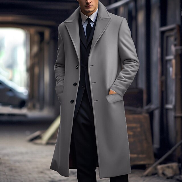 More information about Men's Winter Coat Overcoat Long Trench Coat Outdoor Daily Wear Fall & Winter Polyester Thermal Warm Windbreaker Outerwear Clothing Apparel Fashion Streetwear Plain Lapel Double Breasted