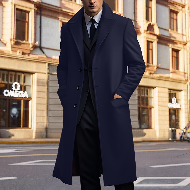 HOT ! Men's Winter Coat Overcoat Long Trench Coat Outdoor Daily Wear Fall & Winter Polyester Thermal Warm Windbreaker Outerwear Clothing Apparel Fashion Streetwear Plain Lapel Double Breasted